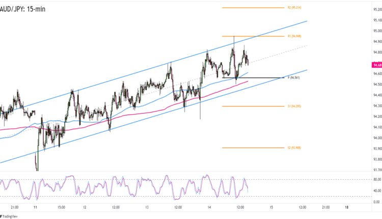 If we see more of the “peak interest rate” themes and some relief over China’s growth prospects, then AUD/JPY may extend its uptrend. The pair may see demand around the 94.60 Pivot Point level or the 94.50 area closer to the 15-minute chart’s 100 and 200 SMAs as well as the ascending channel support.