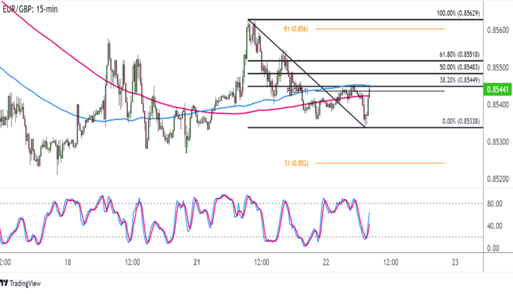 A larger pullback might still reach the 50% Fib close to the .8550 minor psychological handle or the 61.8% level at .8551 ahead of the actual releases.
