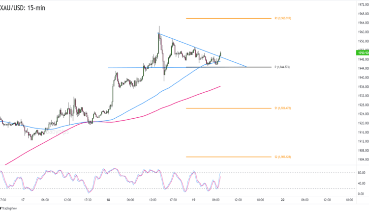 These factors may have contributed to XAU/USD breaking above its higher lows pattern in the 15-minute time frame. As you can see, price is now trading above its trend line resistance after finding buyers near the $1,945 area.