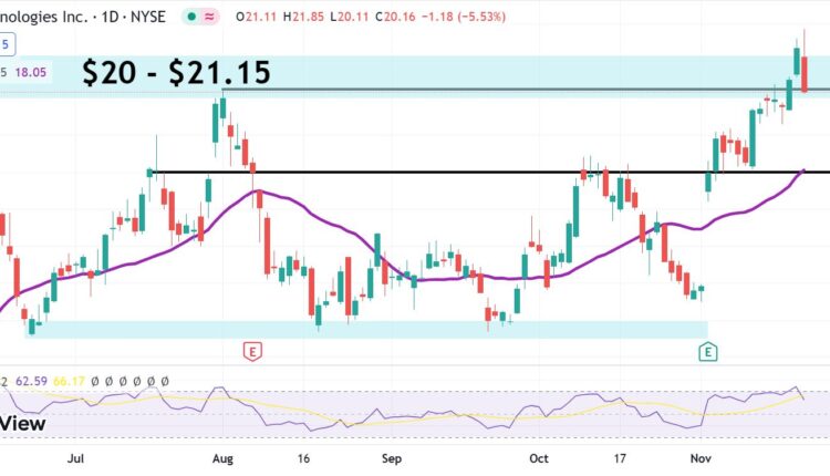 Last Friday, Palantir’s stock price closed above the $20.24 range high from August 1. But the Relative Strength Index (RSI) showed that PLTR was overbought after such a brisk rally in the first half of November.