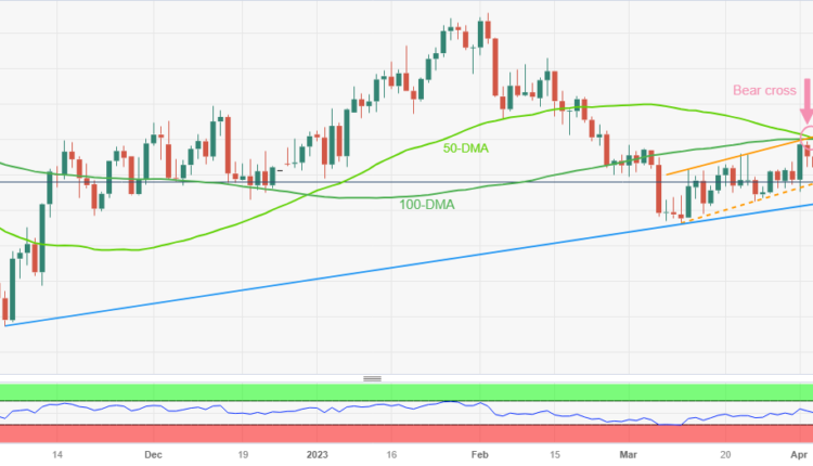 - Clear break of one-month-old ascending trend channel, bearish moving average crossover keeps sellers hopeful.