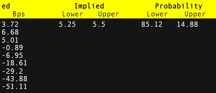 Money market pricing (see table below) shows December 2024 expectations for additional rate cuts being increased to 51bps from 40bps earlier this week. This pricing is incongruent with Governor Bailey’s messaging as well as the BoE’s inflation forecasts. Time and more data will give traders a more accurate picture of the potential trajectory of the BoE.