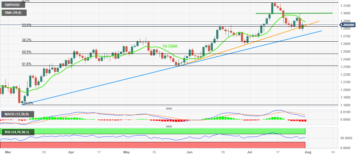 GBP/USD aptly portrays the market’s indecision amid the early hours of the key week comprising the Bank of England (BoE) Monetary Policy Meeting and the US Nonfarm Payrolls (NFP), making rounds to 1.2850 by the press time. In doing so, the Cable pair also justifies the mixed technical signals amid cautious optimism.