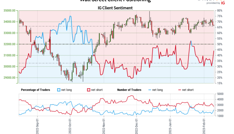 In recent days, the Dow Jones and S&P 500 have been aiming lower. In response, retail traders have been slowly increasing their net-long exposure on Wall Street. This can be seen through the lens of IG Client Sentiment (IGCS), which tends to function as a contrarian indicator. As such, if this trend in positioning continues, further losses may be in store for equities.