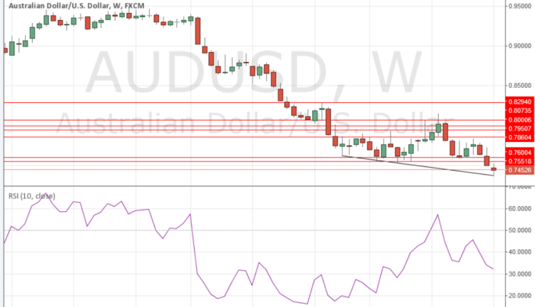 An example is shown below using the AUD/USD currency pair in several time frames, with the RSI indicator set to a look back period of 10. It is below 50 on the weekly, daily, and 4-hour time frames, and is just crossing from above 50 to below 50 on the 5 minute time frame. This could be interpreted as a signal for a short trade.