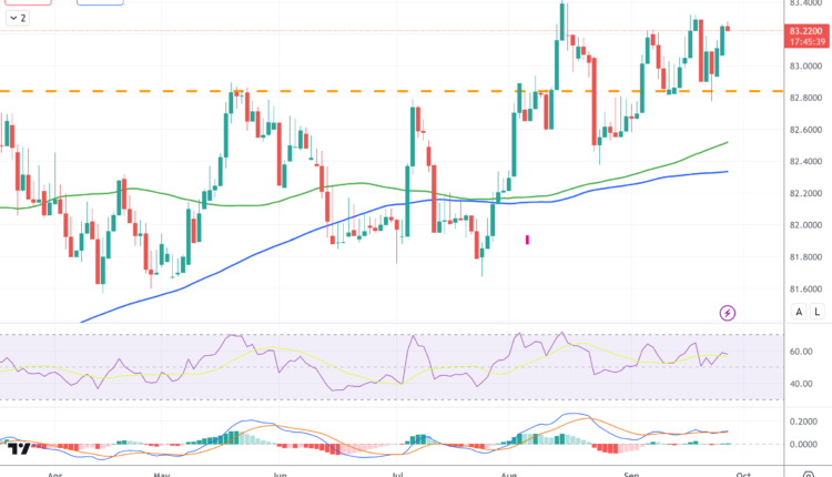 The USD/INR pair might then aim to surpass the all-time peak, around the 82.83.40-83.45 region touched on August 15, and conquer the 84.00 round-figure mark.
