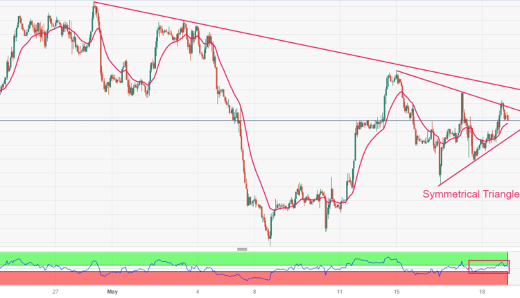 USD/CAD is auctioning in a Symmetrical Triangle chart pattern on an hourly scale, which indicates a volatility contraction. The Loonie asset sensed selling pressure while attempting a breakout of the neutral triangle. The downward-sloping trendline from April 28 high at 1.3668 is acting as a major barricade for the US Dollar bulls.