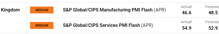 UK PMI data from S&P Global/CIPS revealed the same uneven growth seen in the EU report as services continue to excel while the manufacturing sector witnesses a further contraction. A global growth slowdown coupled with the hottest inflation in western Europe, poses a massive challenge for Britain's economic outlook as stagflation concerns gain traction.