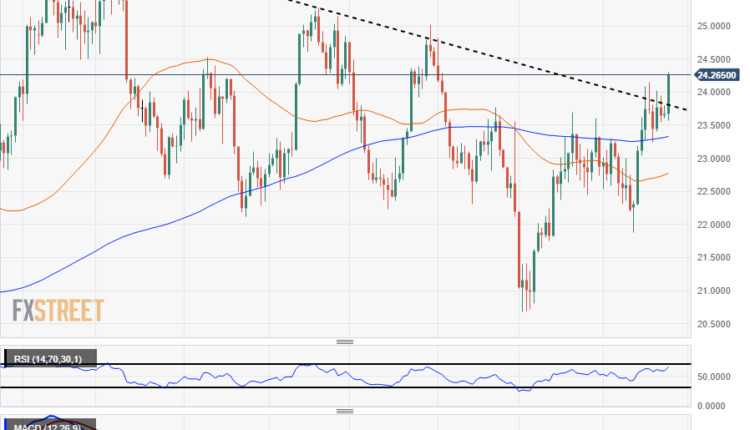 - XAG/USD pings $24.30 as Silver rebounds, following broad-market risk sentiment higher.