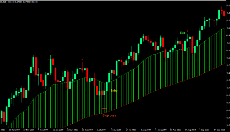 Trend direction is based on how the two lines are stacked. The indicator also shades the area between the two lines to indicate the direction of the trend.