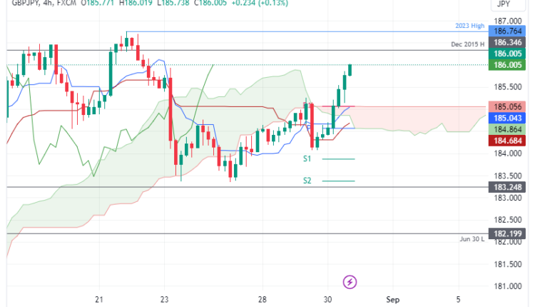 - Technical outlook shows the pair broke above the Tenkan-Sen line, targeting the 186.00 level and potentially the YTD high of 186.76.