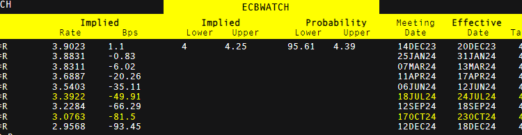 - Markets price in the same amount of rate cuts for the ECB as they do in the US