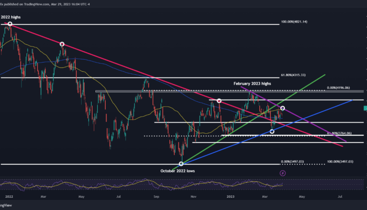 Following today’s advance, the S&P 500 has come within striking distance of overtaking a short-term descending trendline at 4,030, a key resistance worth keeping an eye on. Price reaction in this area could offer important technical clues about the near-term outlook, with a bearish rejection setting the stage for a retest of the 200-day simple moving average and a topside breakout exposing the psychological 4,100 level.