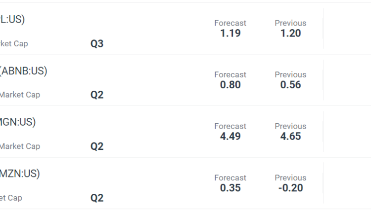 Apple (AAPL) is expected to post earnings per share (EPS) of $1.19 on revenue of $81.73 billion, while Amazon (AMZN) is projected to earn $0.35 per share on sales of $131.46 billion. Given their strong ties to consumers, paying attention to their remarks on household spending patterns is essential. Positive commentary could drive bullish sentiment in the market, while negative feedback might raise concerns about the road ahead.