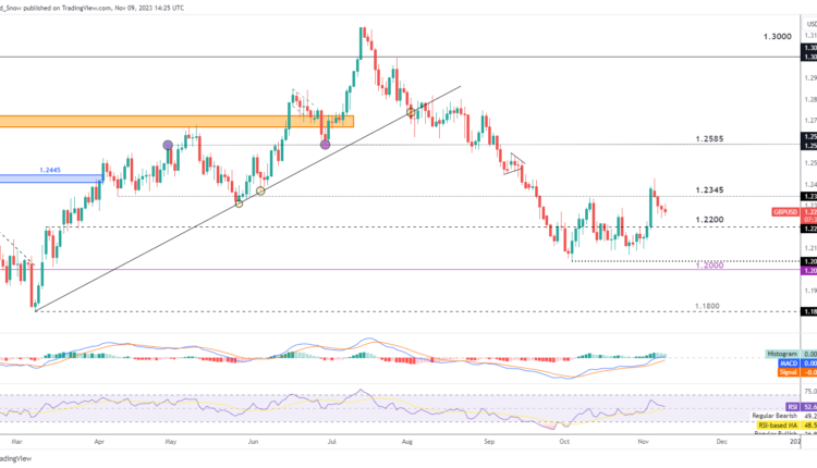 GBP/USD has failed to build on prior bullish momentum and instead has continued to pull back towards 1.2200 after breaching well above 1.2345 – a prior swing low. The FX market in general has struggled for direction recently as major central banks near their respective peaks as far as interest rates are concerned.