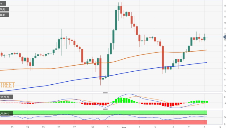 Sticks to modest gains around mid-150.00s, looks to Fed’s Powell