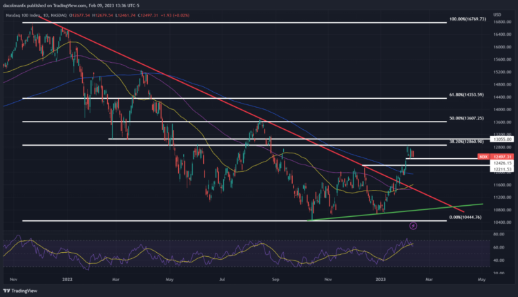 Focusing on the Nasdaq 100, the tech index has begun to retrace after failing to clear resistance at 12,860, a clear technical barrier defined by the 38.2% Fibonacci retracement of the 2021-2022 sell-off. If bears regain decisive control of the market and drive prices lower, the first major support to keep an eye on appears at 12,425, followed by 12,210. On further weakness, the focus shifts to the 200-day simple moving average.