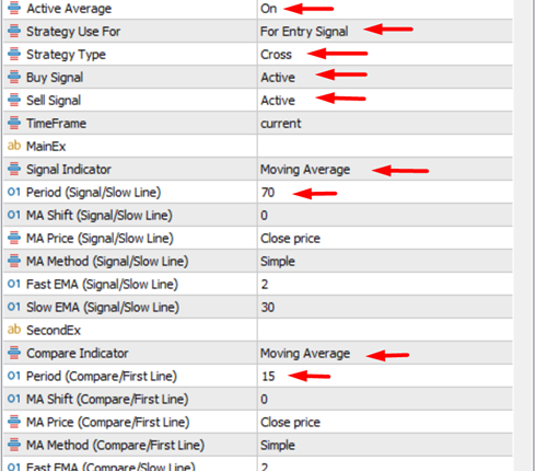In Average Indicator – Strategy Type = Cross are match with our requried strategy so we active Average Indicator = On and choose Strategy Type = Cross.
