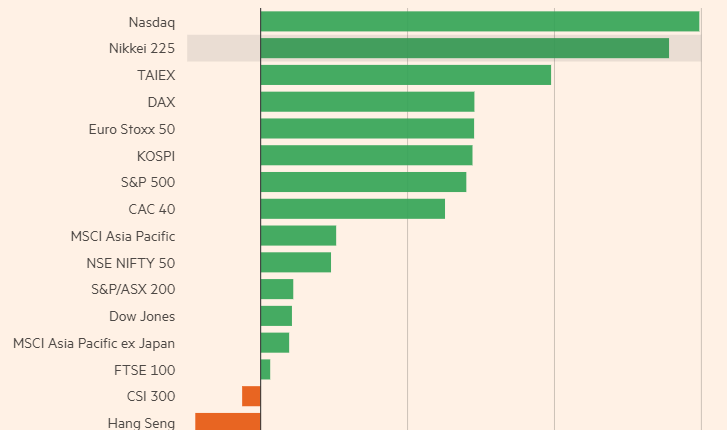 Nikkei Ends 1H in Second Place, Narrowly Behind the High-Flying Nasdaq