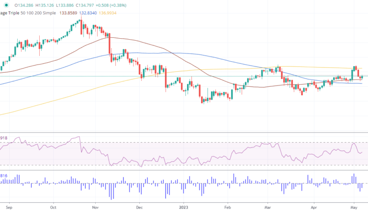 The USD/JPY rises after dropping to a weekly low of 133.50, advances 0.42%, spurred by buyers stepping in at around solid technical support level. An upbeat April Nonfarm Payrolls report also lifted the US Dollar (USD) vs. the Japanese Yen (JPY) safety. At the time of writing, the USD/JPY is trading at 134.81 after dipping to a low of 133.88.