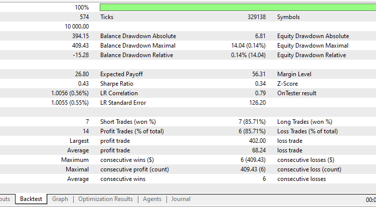 This week we analyze the trading of BotGPT MT5 which carried out 7 trades including one (trade B) the main one, for a gain of $394 for $10,000 of capital. Which corresponds to a performance of 3.94% for a DD of 8.87%.