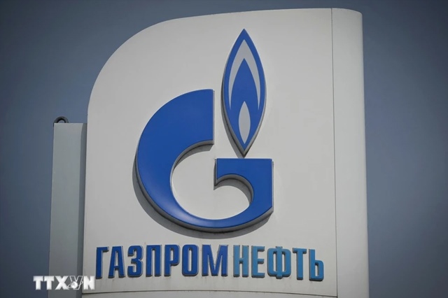 Biểu tượng Tập đoàn khí đốt Gazprom tại một trạm xăng ở Moskva, Nga. (Ảnh: AFP/TTXVN)