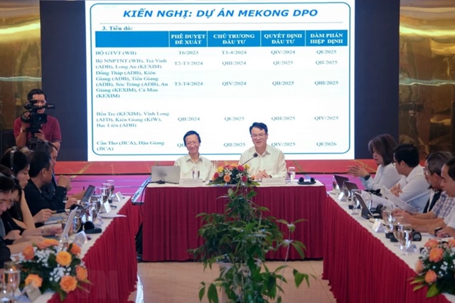 Tại cuộc họp, ông Phạm Hoàng Mai, Vụ trưởng Vụ Kinh tế Đối ngoại thuộc Bộ Kế hoạch và Đầu tư, cho biết các dự án Mekong DPO do Bộ Giao thông Vận tải, Bộ Nông nghiệp và Phát triển Nông thôn cùng 13 địa phương vùng Đồng bằng sông Cửu Long đề xuất, gồm 16 dự án với tổng mức đầu tư 99.133 tỷ đồng; trong đó, vốn đối ứng của Việt Nam là 30.037 tỷ đồng, vốn vay nước ngoài 2,932 tỷ USD (tương đương 69.096 tỷ đồng).