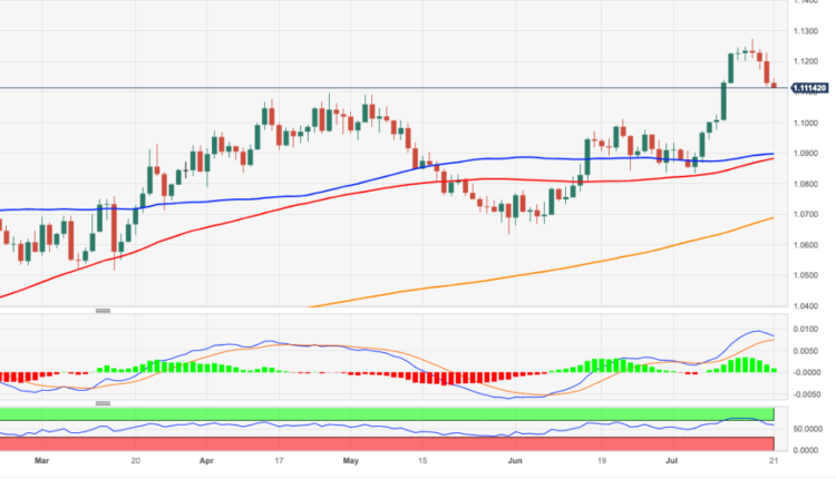 - EUR/USD trades in weekly lows near 1.1100.