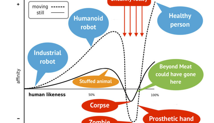 There were many speculations. For example, it has been suggested that Beyond Meat products flopped because of their cost. Another version says that their meat does not look much like meat. But the problem may be something completely different. Maybe on the contrary, it looks like meat? Too much like meat. Here we come to the uncanny valley phenomenon.