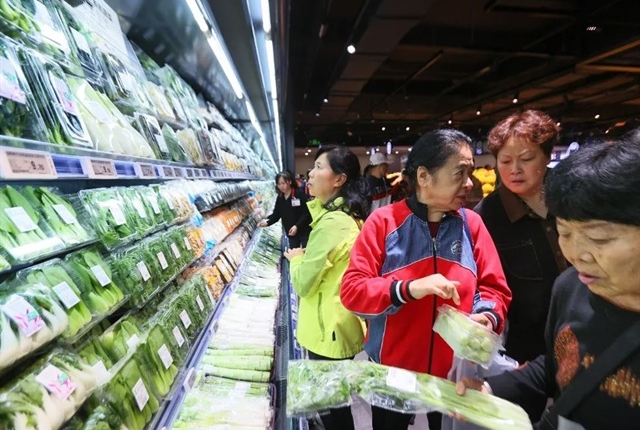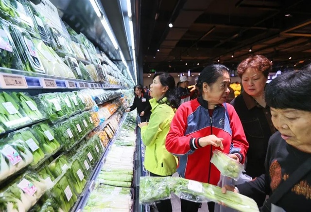 Khách hàng mua sắm rau củ tại một siêu thị của Yonghui Superstores ở thành phố Trùng Khánh, Trung Quốc. Ảnh: ichongqing.info