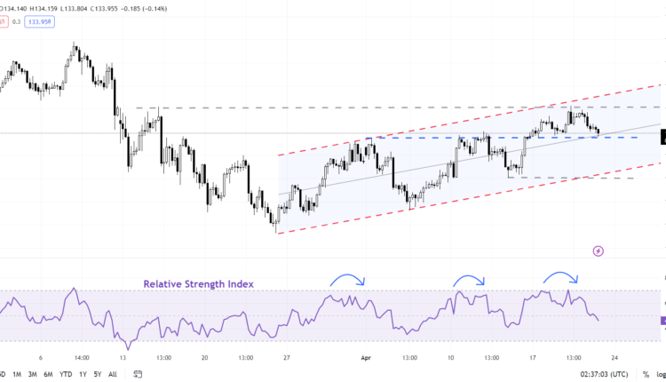 In recent sessions, USD/JPY has struggled to rise past a crucial converged ceiling at about 135.00-135.50, including a rising channel since the end of March and the mid-March high of 135.10. Immediate support is on a horizontal trendline from early April at about 134.00 – any break below would confirm that the short-term upward pressure had faded, that is, the consolidation since last month is running out steam, raising the risk of a resumption of the downtrend.