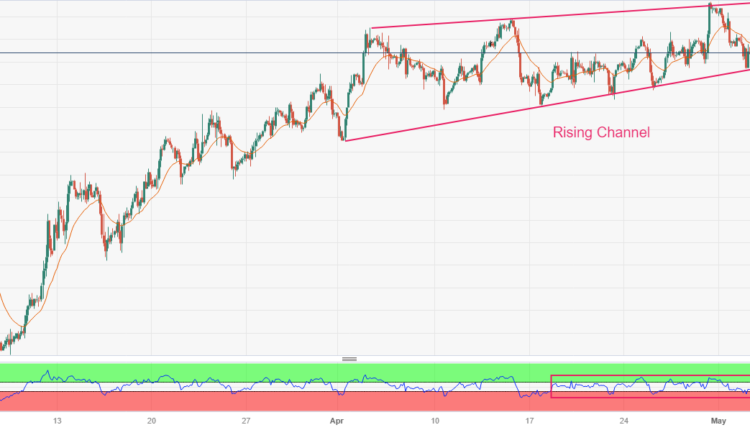GBP/USD is auctioning in a Rising Channel chart pattern on a two-hour scale. The current variation of the Rising Channel lacks strength and is signaling a loss in the upside momentum. The upper portion of the aforementioned chart pattern is plotted from April 04 high at 1.2525 while the lower portion is placed from April 03 low at 1.2275.