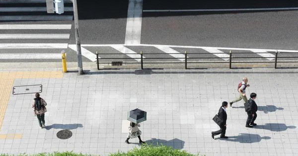 Người dân di chuyển dưới tiết trời nắng nóng tại Tokyo, Nhật Bản (Ảnh: Kyodo/TTXVN)