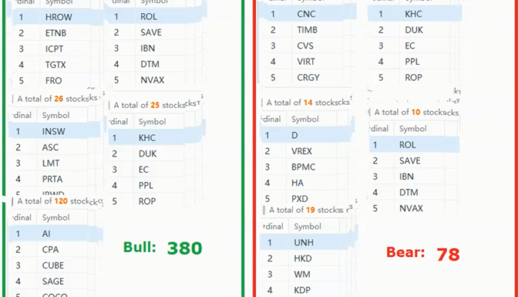 The bullish setup vs. the bearish setup is 380 to 78 from the screenshot of my stock screener below suggested a positive market environment.
