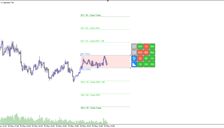 Easy to use, just in a few clicks, you can enable or disable the levels you want to include, like stop loss, take profits, break-even, and trailing stop. Its intuitive and easy-to-use panel will facilitate your trading. Before pulling the trigger, you can quickly show or hide those levels in your graph to confirm your plan.