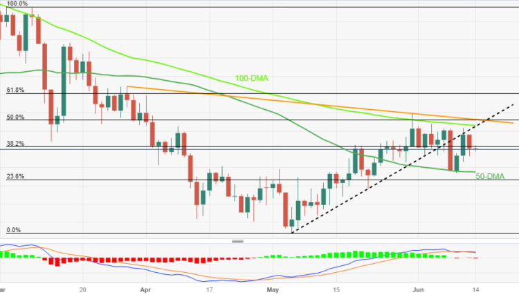 • Looming bear cross on MACD adds strength to the downside hopes.
