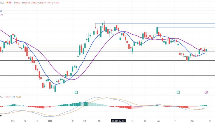 Tesla stock has used the premarket on Friday to move just above the recent swing high on May 8 of $173.80. That makes a jump back to $200 a real possibility over the next month. First, this rally will need to be confirmed by the 9-day moving average crossing above its 21-day counterpart. Currently, the 21-day average is nearly $3 ahead of the shorter moving average. The Moving Average Convergence Divergence (MACD) indicator is showing a slight bullish crossover at the moment, so that is another data point in bulls’ quiver. TSLA stock last closed above $200 on March 31.