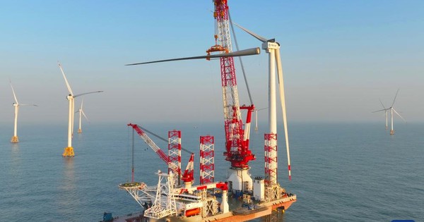 Ảnh về việc đang lắp đặt tuabin gió ngoài khơi 20 MW. Ảnh: Tân Hoa xã