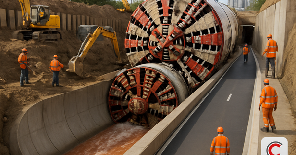 Hệ thống hầm dạng TBM lưỡng dụng để vừa phục vụ giao thông, vừa thoát nước chống ngập. Ảnh minh họa tạo bởi AI.