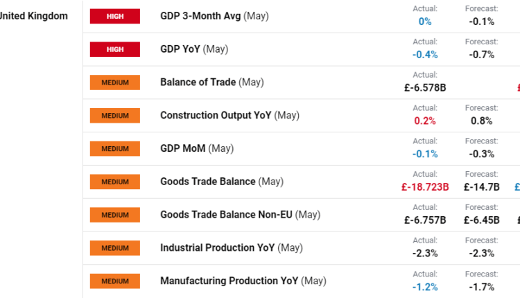 UK Economy Shrinks Less Than Expected in May, GBP/USD Breaches 1.3000