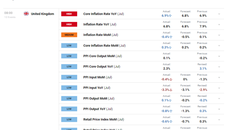 What does this mean for the BoE and their interest rate cycle? Looking at implied rates shown in the table below, little has changed pre and post-announcement. Markets are expecting with an almost 92% probability that the BoE will hike by 25bps in September. Taking into account the recent upside inflation report, the central bank may look to maintain this rate in November or hike further depending on incoming economic data between now and then. For now, the British pound may find some support after a recent bout of weakness against the greenback.