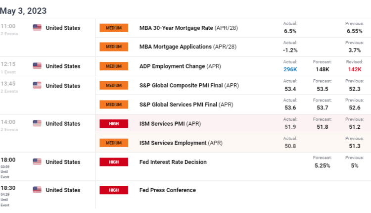 This sets up the upcoming FOMC announcement to be packed with anticipation as the Fed have multiple moving parts to contend with in the midst of a banking crisis and the looming decision around the US debt ceiling.