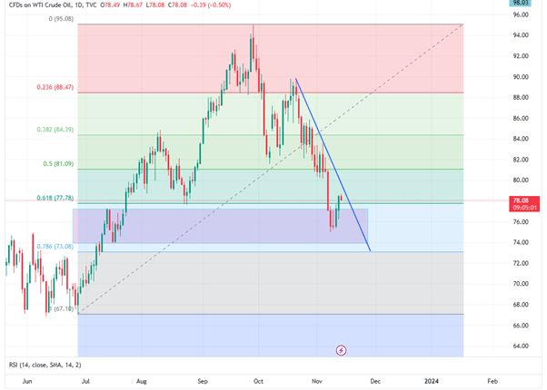 The International Energy Agency raised its own oil demand growth forecasts during the session. The agency’s forecast for this year was upped to 2.4 million bpd, from 2.3, with 2024’s expectation despite tipping slower growth across almost all major economies.This didn’t have a lasting effect on prices, suggesting that the market remains extremely wary after rises already seen. Those were largely inspired by November’s monthly report from The Organization of the Petroleum Exporting Countries which did a little to counter the market’s prevailing gloom. OPEC laid the blame for the heavy falls seen since September squarely at the doors of speculators and ‘overblown’ negative sentiment in a fundamentally strong market. It also increased its forecast for overall oil demand this year by 20,000 barrels per day and stuck to its relatively bullish call for 2024 (2.25 million bpd).