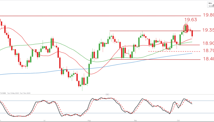 Traders respecting the longer-term bias might prefer to wait for weakness to play out before looking for a long entry. Long entry might be considered on a bullish price reversal close to either the 18.90 or 18.70 support levels.In this scenario, a move back towards 19.35 and 19.63 provides upside targets while a close below the reversal low might provide a stop-loss consideration for the setup should it manifest.