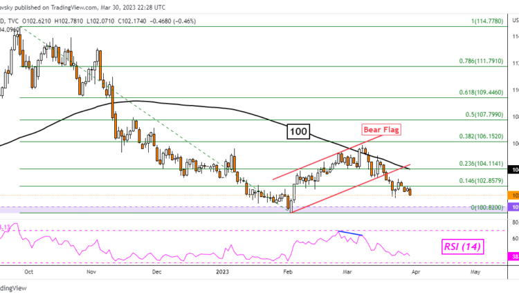 On the daily chart, the DXY continues to make downside progress after a Bear Flag. This is an increasingly bearish sign. Still, the broader objective for the downside remains the 100.82 – 101.29 support zone, which was established in early February. Clearing this range would open the door to extending the near-term downward bias. Immediate resistance seems to be the 100-day Simple Moving Average (SMA).