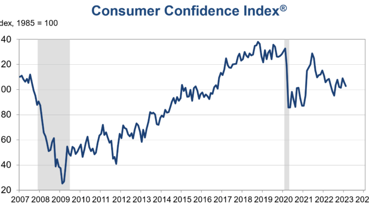 A popular gauge of U.S. consumer attitudes deteriorated significantly in February, worsening for the second month in a row, a sign that Americans are becoming more pessimistic about the economic outlook amid persistently high inflation and rapidly rising interest rates.