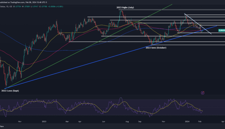 EUR/USD ticked up on Thursday, approaching resistance at 1.0785. If bulls manage to push prices above this barrier in the coming days, a move toward the 200-day SMA and trendline resistance at 1.0835 may be in the offing. On further strength, the market focus will turn toward the 1.0900 handle.