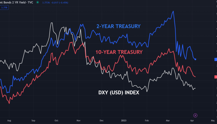 Treasury yields reflected this perspective of a less hawkish Fed to some degree, but the US Dollar found some support. Recent trading sessions have typically seen the greenback loosely track Treasury yields up or down.