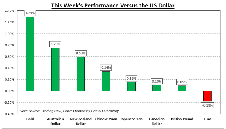 The US Dollar broadly underperformed against its major counterparts this past week, with gold prices seeing a strong rally. A root cause of this was somewhat disappointing economic data from the world’s largest economy. That contributed to financial markets increasingly pricing in a less dovish Federal Reserve down the road.