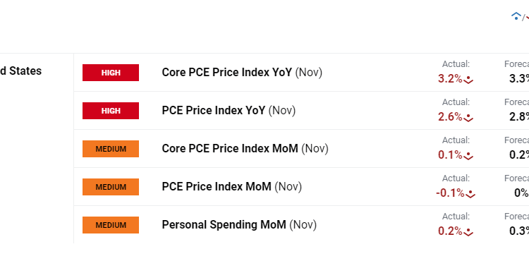 The U.S. dollar, as measured by the DXY index, softened on Friday, hitting its weakest level in nearly five months at one point during the regular U.S. trading session, following encouraging data on consumer prices. For context, November core PCE, the Fed’s favorite inflation gauge, clocked in at 0.1% m-o-m, bringing the annual rate to 3.2% from 3.4%, one-tenth of a percent below consensus estimates – a sign that the trend continues to move in the right direction.